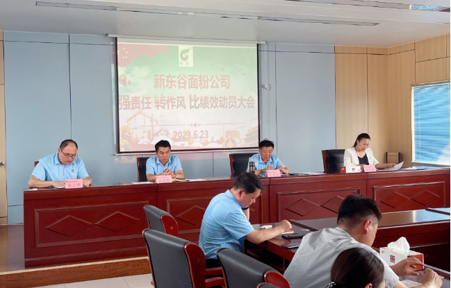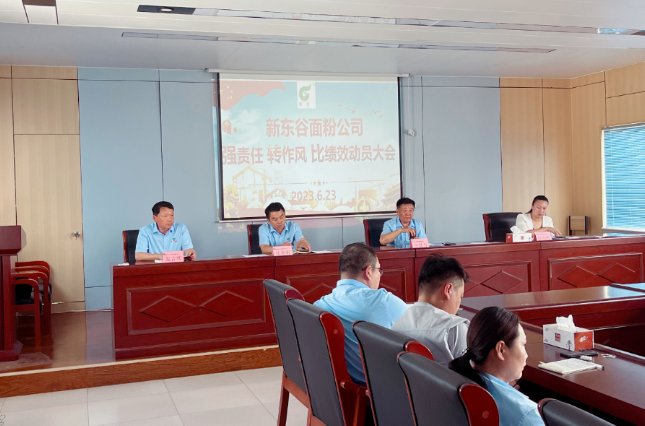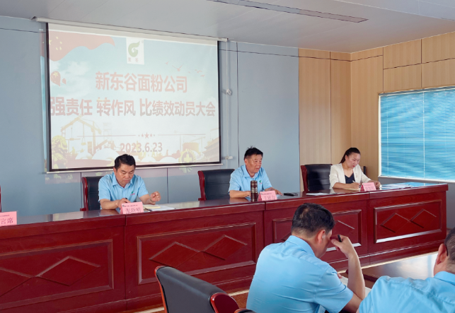 2023年6月23日,新东谷面粉有限公司组织“强责任·转作风·比绩效”活动动员大会,该活动自2023年6月23日起至9月22日止,用时三个月,分为三个阶段。