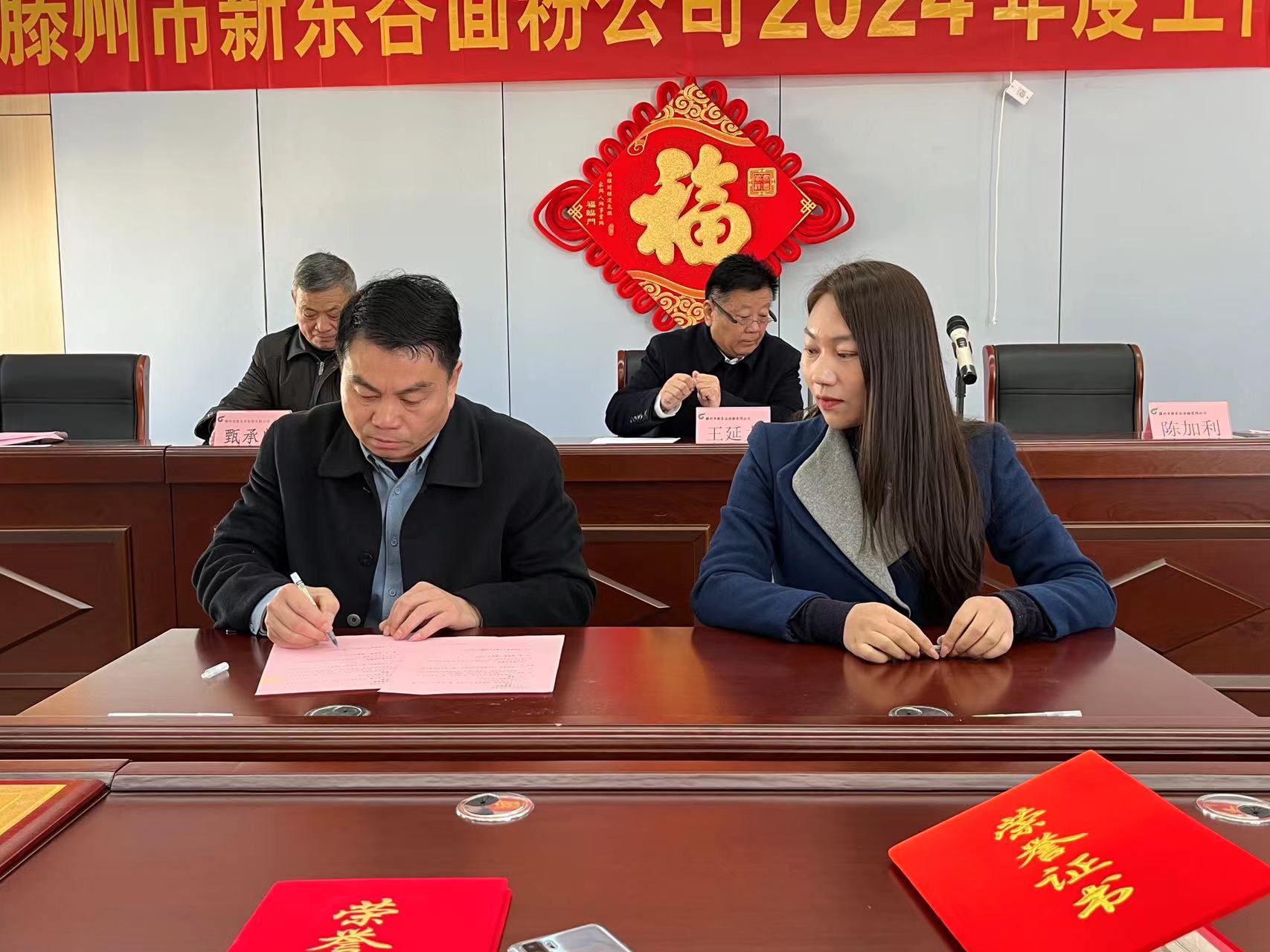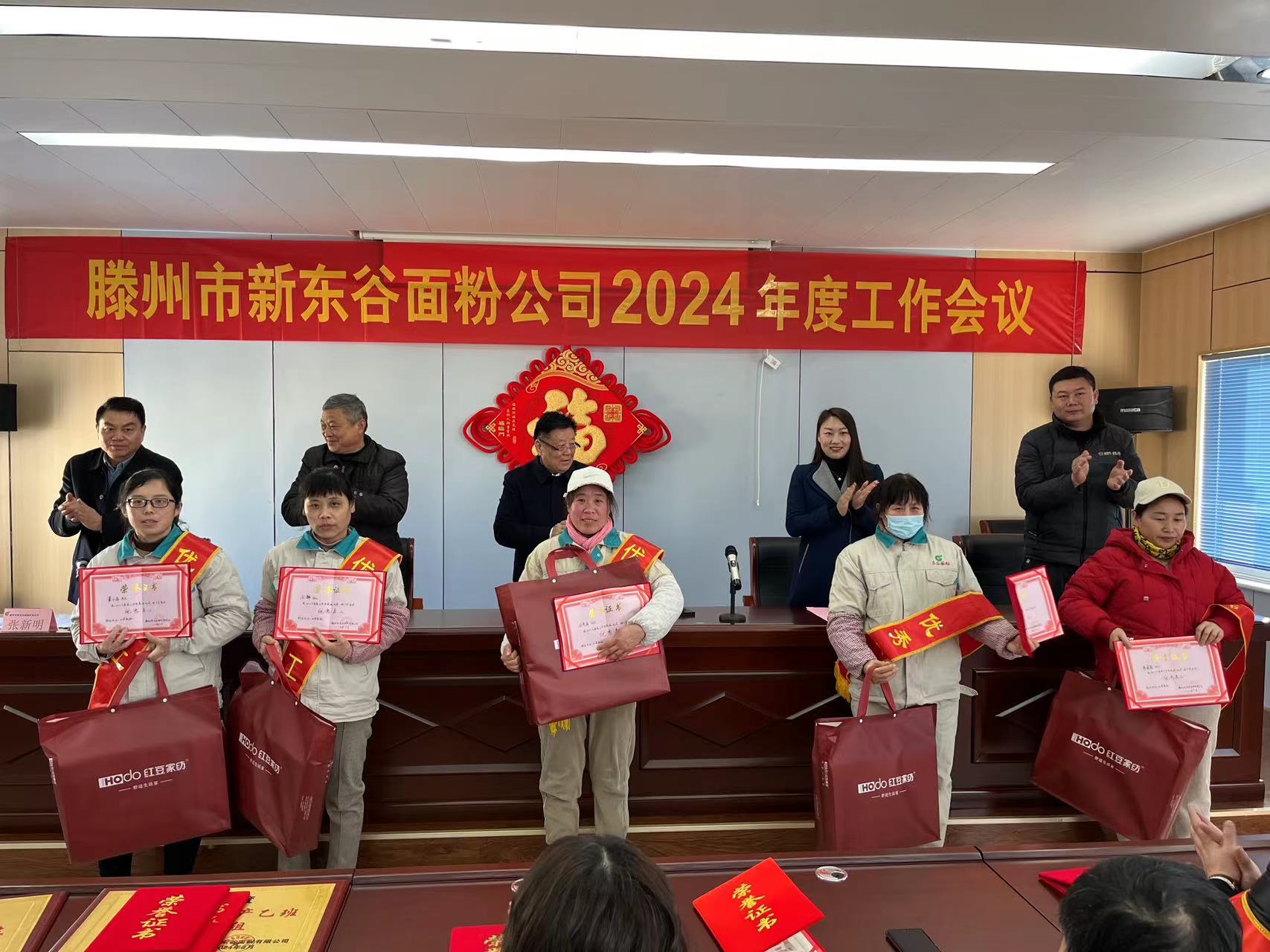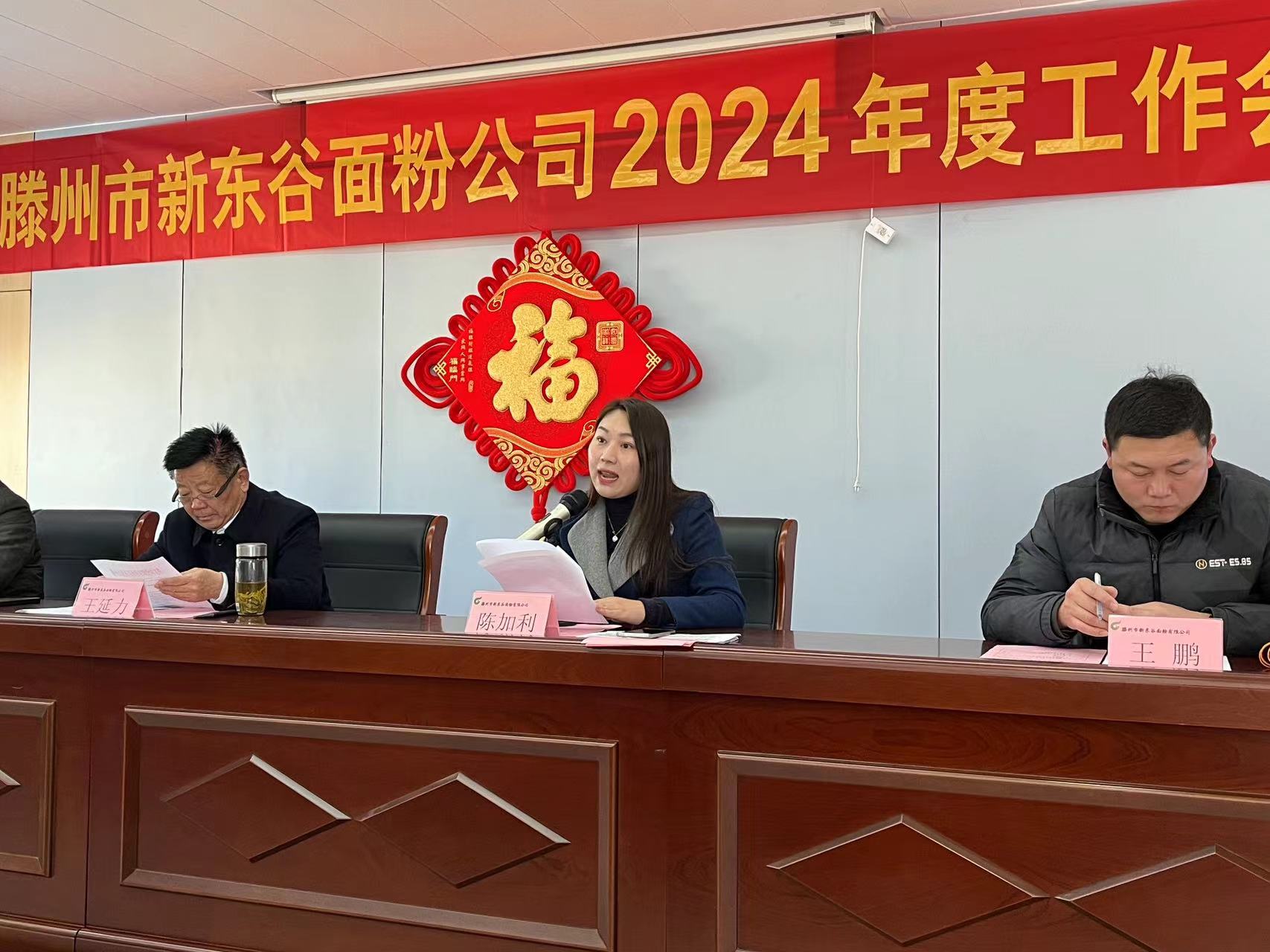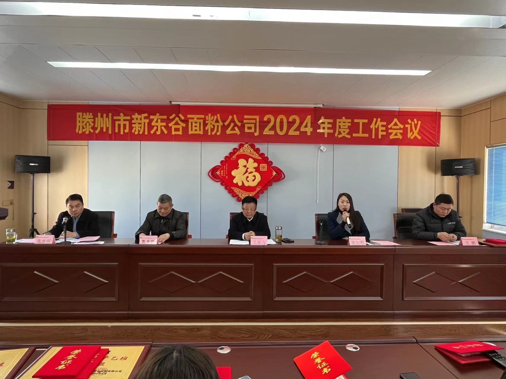 2024年2月17日上午,滕州市新东谷面粉有限公司在公司三楼会议室隆重召开了2024年度工作会议。全面总结2023年各项工作、安排部署2024年重点工作任务,表彰在2023年各项工作中涌现出来的先进集体、先进个人。公司与车间部室签订了2024年安全生产经营目标责任书。会议取得圆满成功。