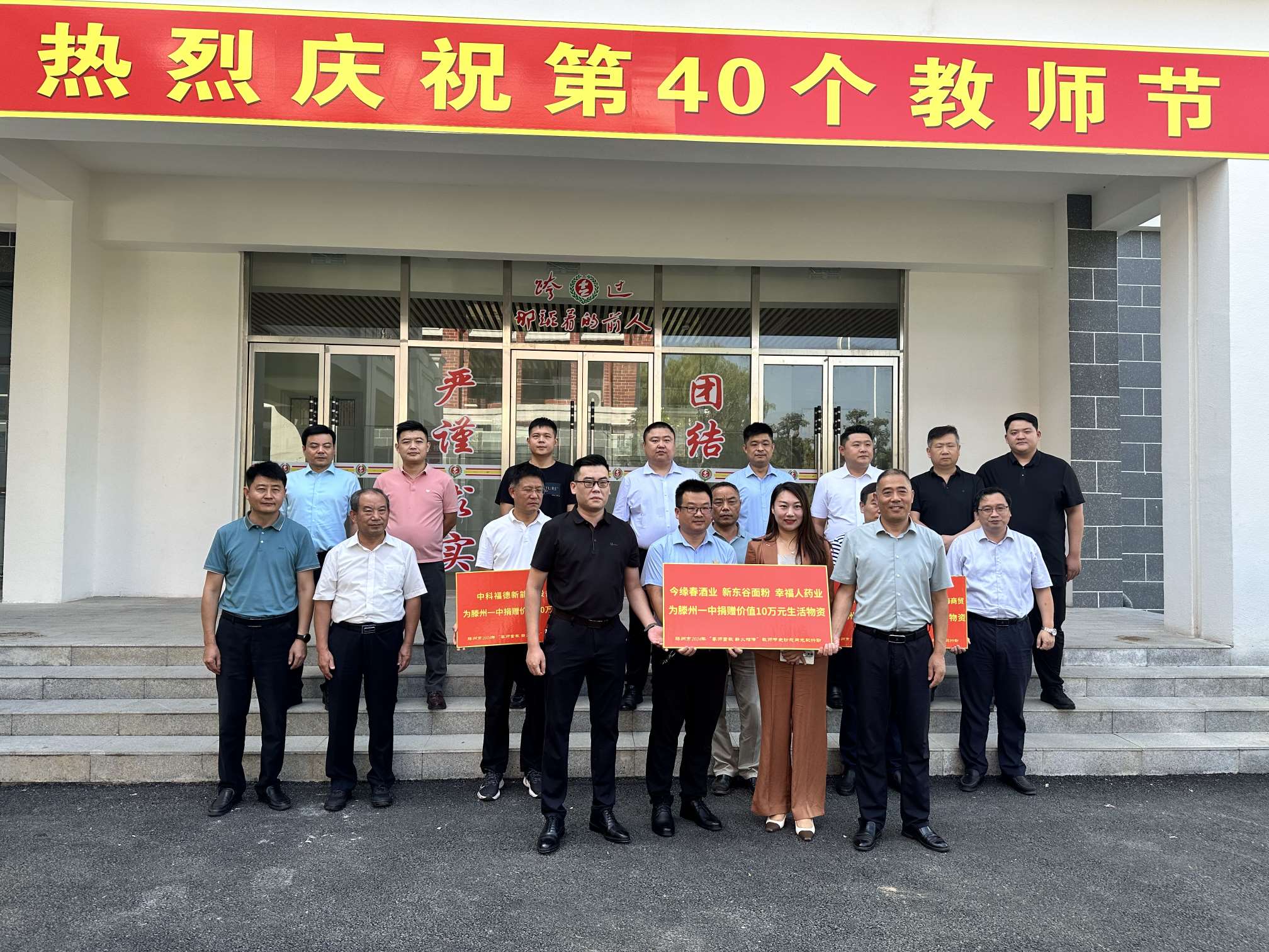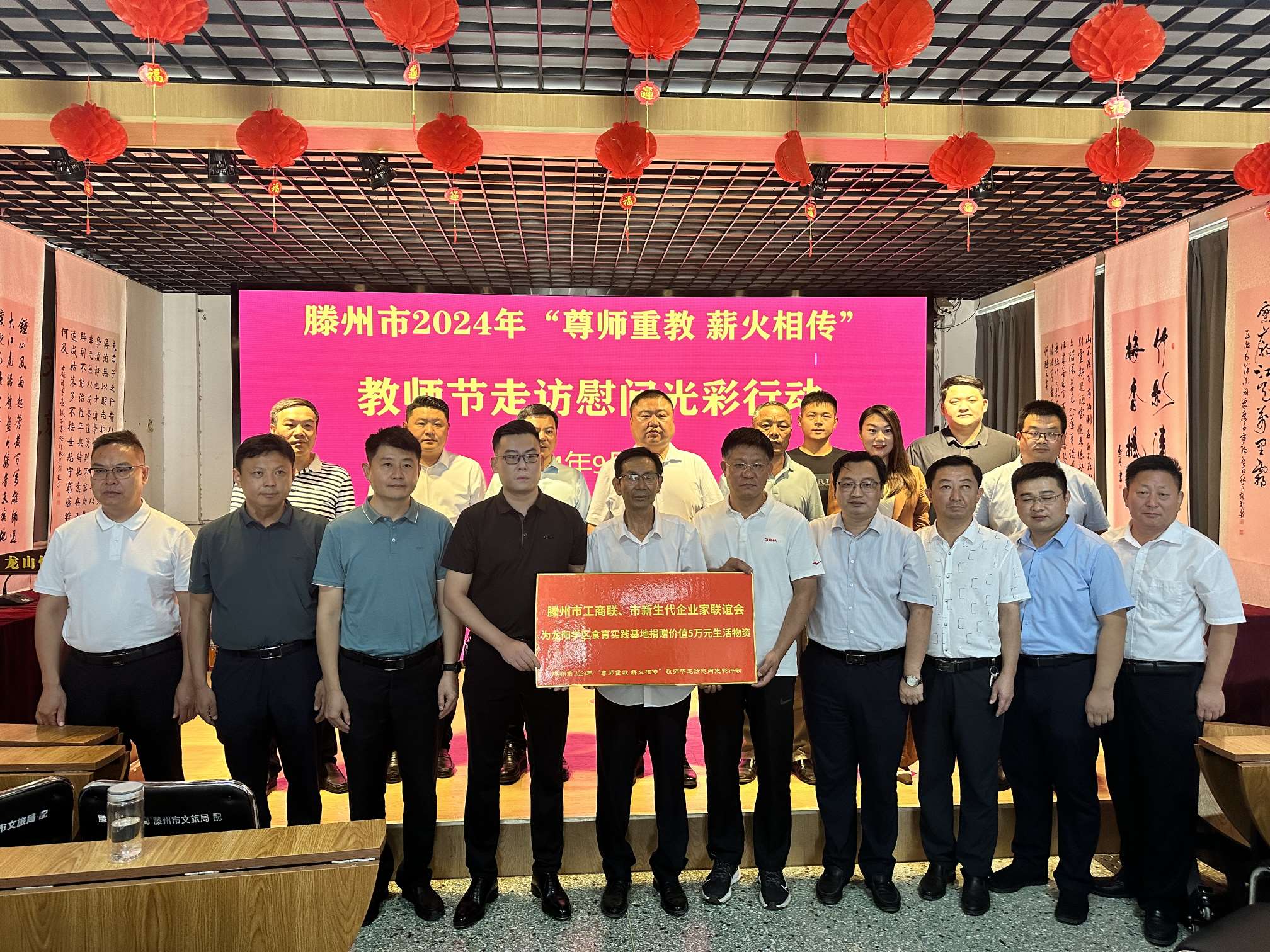 参加活动中,新东谷面粉公司总经理陈加利,一行先后来到滕州一中、龙阳学区食育实践基地,看望慰问辛勤耕耘在一线的教师代表,向广大教育工作者、社区工作者致以节日的问候和美好祝愿。活动中,市新企联爱心企业向两所学校捐赠价值20万元的空气能设备,向两所学校的教职工及社区工作者捐赠了价值30万元的学习用品及东谷牌面粉、面条等生活物资。