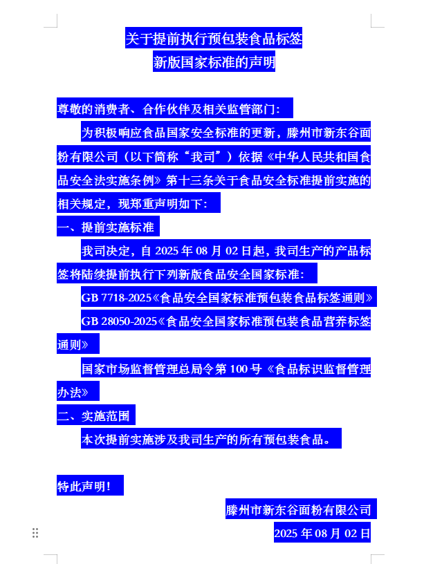 关于提前执行预包装食品标签 新版国家标准的声明